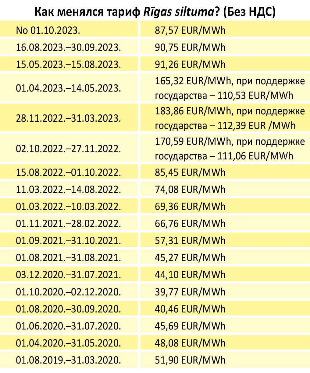 Предприятие Rīgas siltums подало в Государственную комиссию по регулированию общественных услуг новый тариф на теплоэнергию – 87,57 EUR/MWh (плюс НДС). Тариф будет на 3,5% ниже действующего, а по сравнению с октябрем 2022 года платежи рижан за отопление сократятся более, чем на 20%.